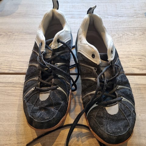 Mustat kaksi kertaa käytetyt sisäpelikengät kokoa 36 (naftia kokoa)