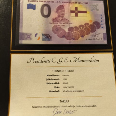 Laaja kokoelma nollaseteleitä kansiossa, aiheena Suomen presidentit.