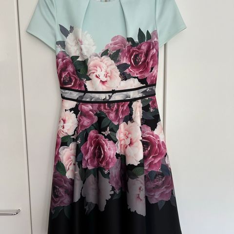 Upea Ted Baker mekko, joka sopii niin juhlaan kuin arkeen. Väri tummansininen (lähes musta) ja sekä edessä että takana kauniit leikkaukset. Irrotettava vyö mukauttaa mekkoa. Takana vetoketju. Vain pari kertaa päiväjuhlissa käytetty, ei käytön jälkiä.