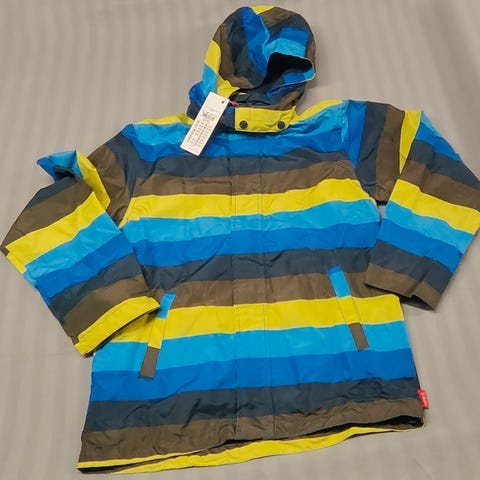 Myydään käytetty Name it -merkkinen välikausitakki kokoa 146cm. Kaunis sinisävyinen lehtikuvio. Irrotettava huppu neppareilla. Takana heijastin. Hupussa ja miehustassa trikoovuori, hihoissa liukasta vuorikangasta. Trikoovuori on pesussa vähän kutistunut, joten helma pussittaa hieman, siksi laitoin kunnoksi kohtalainen.