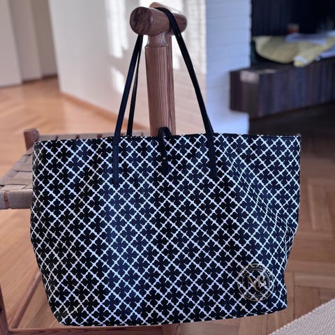 Myydään UUSI, näyttävä, iso By Malene Birger laukku. Hintalaputkin vielä paikoillaan! By Malene Birgerin tyylikäs laukku arabiankukkakuosilla. Laukku toimii erinomaisesti töissä, vapaa-ajalla sekä viikonloppureissuilla. Tilavaan laukkuun mahtuu hyvin kaikki tärkeimmät tavarat. Materiaali on kestävää ja kosteutta hylkivää polyvinyylikloridia. Tämä on huolella valmistettu laukku tanskalaiselta brändiltä. siinä on tilava sisäosa sekä sisätasku. Geometrinen kuviointi tuo siihen visuaalista kiinnostavuutta, Korkeus 55cm (Ovh. 379€) livenä makeempi kuin kuvissa.😍