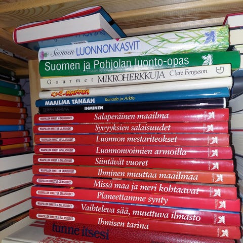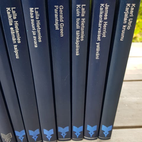1980- luvun kirjakerhon kirjat yhteishintaan. Siisti kunto, toki ajan patinaa on. Yhdessä kirjassa yliviivattu teipillä kohtia etusivulla.