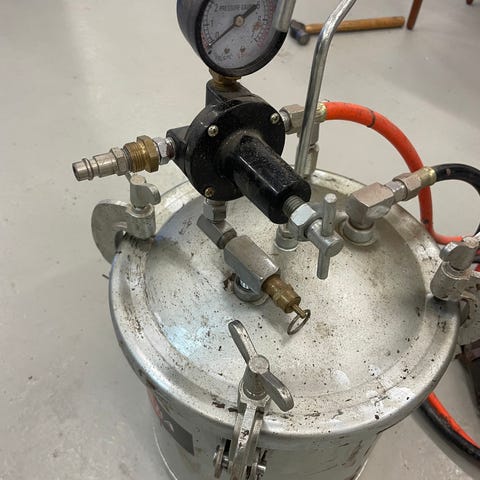 Korkeapainemaaliruisku. Hyvin palvellut. Itse käytin vain talon pohjamaalien maalaukseen ja ei ollut ongelmia.
