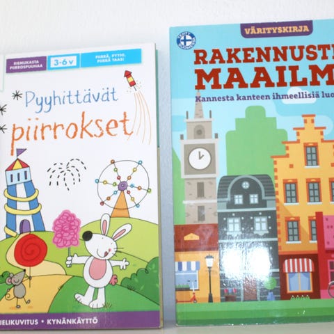Prinsessa ja keiju aiheinen setti: 2 x lahjakassi 26x33 cm (prinsessa ja linna), Opi piirtämään Keijuja ja prinsessoja (yhdellä sivulla piirros, joissakin kumitettuja piirroksia), Mimi and Friends - värityskirja (tehdyt kuvat leikattu pois) ja Hohtava käsilaukkuni tarroja ja puuhaa (osa tehtävistä tehty).