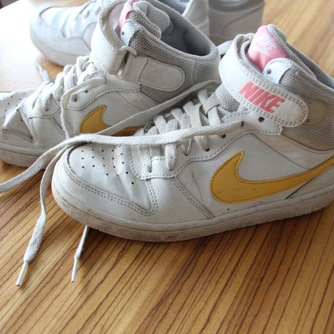 Niken air force 1 lenkkarit valkoiset, hieman värissä tummentumaa, muuten ok ja ehjät.
