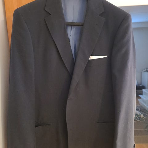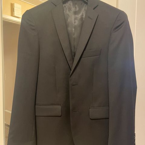 Dressmann Wool Strech -puvuntakki ja housut. Slim fit, väri musta. Takin koko 42S, housut 28-30. Hengittävää, rypistymätöntä villasekoitusta.