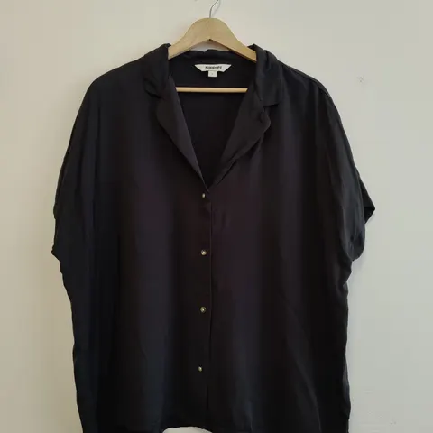 Myydään KappAhlin musta laatikkomallinen paita. Koko oversized L, kai-kai 66 cm ja olka-helma 63 cm. Rento mitoitus.