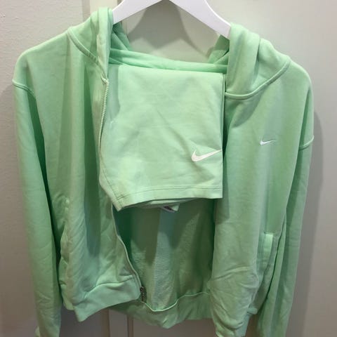 Violet Rose- active tyköistuva mustat treenikaprit ja Nike -huppari ( M)