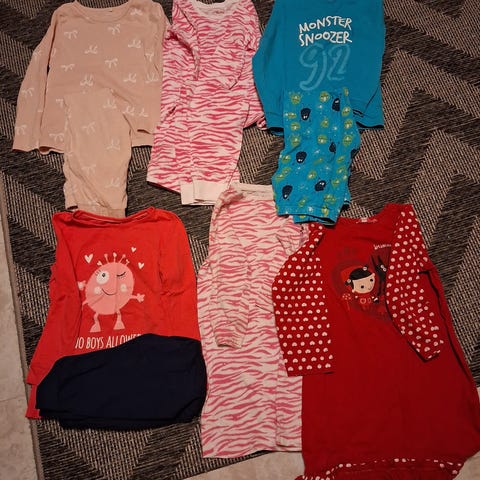 H&M 110/116 kesäyökkärit, perussiistit käytetyt, keskimmäisessä kuumailmapallon vieressä pieni harmaa tussin jälki. 3€/setti.