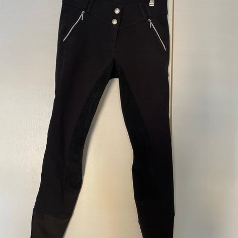 Erittäin siistit kokopaikkaiset ratsastushousut koko Ladies 36. Puuvillaa 95%, elastaania 5%. Lahkeissa tarrakiristys.