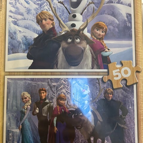 Disney Frozen Glitter Puzzl sisältää 104 palaa. Kaikki palat tallessa ja kunnossa