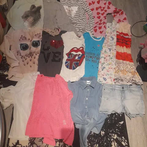 Vaatepaketti kokoa 140/146. Parissa huomasin pienen tahran. Kissatalous