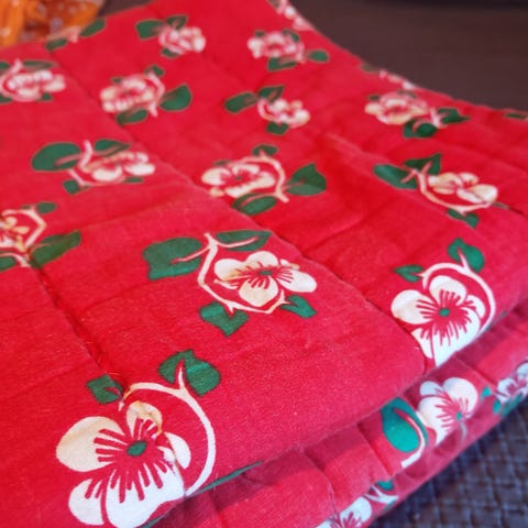 Kaunis vanha ohut täkki. Valmistaja Espe Oy Kouvola. Ei uudenveroinen mutta pesty, ei tahroja eikä reikiä. Ei haalistumia ja täytteet paikoillaan. Mitat n. 163 x 142 cm. Nouto tai postitus (+10,90e).