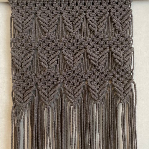 Myydään roosan värisestä moppari langasta tehty makramee. L62xP98cm + ripustusnaru. Kepin pituus: 66cm. Hinta: 45e+pk