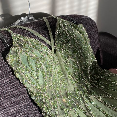 Käytetty kerran, hameen pituus 100 cm, vyötärö n.80 cm, rinnanympärys n.100 cm, sopii esim. vanhojen tansseihin. Väri vaalea lila.