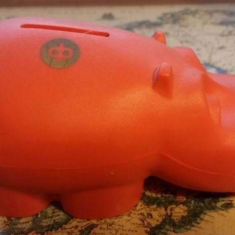 Vanha säästölipas Henri Hippo Osuuspankki 1980-luku. Valmistaja MK-Tuote, design Auvo Taivalvuo.