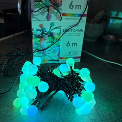 Clas ohlsonilta ostettu disco valoketju, uusi, olikin omaan makuun liian värikäs.