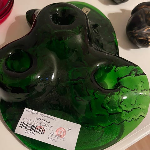 Aivan upeat uudenveroiset kolmion malliset Kumela kynttilänjalat. Sivun pituus noin 14cm ja korkeus noin 7cm. Myydään parina.