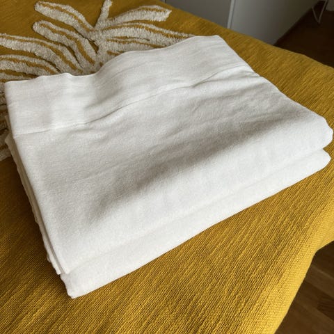 Ellos Homen valoverhot, uudet - kerran ripustettu ja pakattu takaisin pakettiin. 2 kpl verhoja, joiden pituus 220 cm ja leveys 140 cm. Harsomainen kangas. Tyyli ei ollut itselle mieluisa, mutta paketti oli jo avattu, joten ei voinut palauttaa.