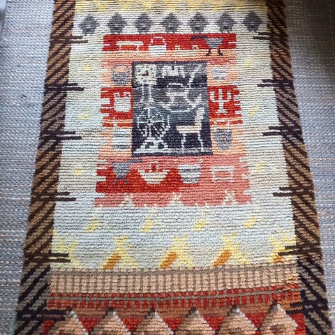 Hyväkuntoinen, hajuton ryijy, Hiillos. Leveys 112cm, korkeus 140cm.