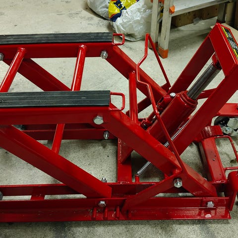 Käytetty nostin. Malli matala, nostokorkeus 30cm. Toimii mm. KTM 690 enduro r 2023. Sis. V-malliset tuet.