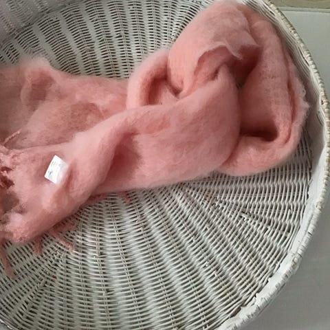 Vähän käytetty vaaleanpunainen Balmuir Aurora kid mohair -huivi. Vaatii säännöllistä harjausta, jotta pysyy kuohkeana.
