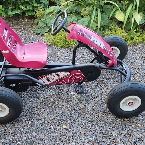 Myydään Berg polkuauto. Kestää myös aikuisen ajella. Mukaan tulee kippaava peräkärry. Ilmatäytteiset renkaat.