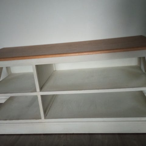 Tästä vanha kaappi/tv-taso. Vaatii kunnostusta/maalia, mutta on ihan kiva näinkin. Ikä ei ole tiedossa ehkä 70-luvulta.