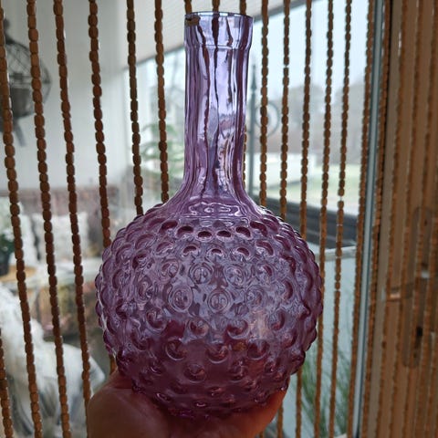 Hyväkuntoinen ja ehjä Nuutajärven kaunis, vihreä näppyläpullo 23 cm