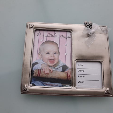 Myydään käsityönä tehty valokuvakehys, johon mahtuu max noin 10cmx12-13cm kuva, ikkuna 6,5cmx9cm. Muovi-ikkunassa pari naarmua. Ei postitusta.