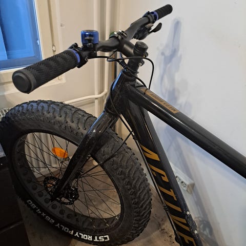 Loistava junnufätti! Runko xs, renkaat 24". Meillä oli n.140-160 cm pitkällä. Ihan paras pyörä Helsingin talviin - fätti kulkee vakaasti suolaloskamuhjussakin! Uudet polkimet ja gripit, ja käytetty vähän aikaa sitten perushuollossa. Jo nämä ovat arvoltaan n.150e yhteensä. Lokarit ja pulloteline kuuluvat kauppaan. 35e lisämaksusta löytyy mukaan myös Kryptoniten U-lukko.