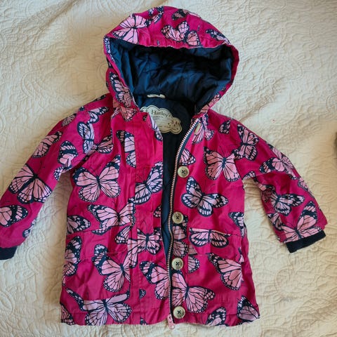 Hyxbabyn kääntö kevyttopatakki koossa 3y. Musta / sinipilkullinen. Vetskari ja taskut molempiin suuntiin.