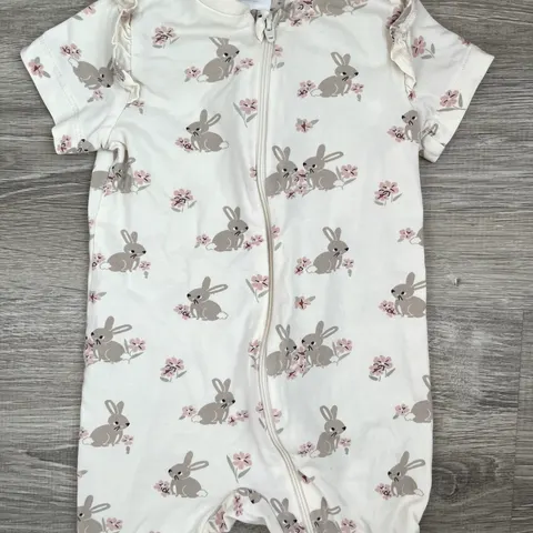 KappAhlin vaaleanpunainen shortsilahkeinen yöhaalari / shortsipuku pupujen kuvilla kokoa 68cm, vastaa mielestäni kokoaan. Ehjä ja tahraton, oikein siisti käytetty kunto, ainoa moite pieni maalikuluma jälki vetoketjussa, kts.kuvat.