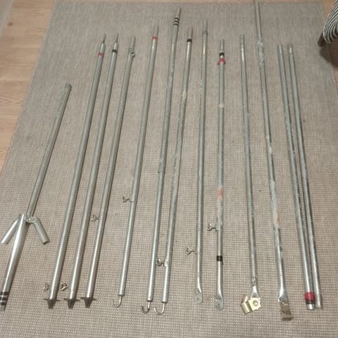 Tässä on kuitenkin paljon käyttökelpoista vielä. Esim. seinää vasten tulevat pystyputket, poikittaiset ”myrskytuet”, ilmakaaret, kantokassi, pumppu, jne...