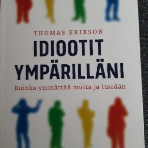 Thomas Erikson Idiootit ympärilläni kirja, joka käsittelee ihmisten käyttäytymistä ja vuorovaikutusta. Kirja on suomenkielinen ja tarjoaa näkemyksiä erilaisista persoonallisuustyypeistä ja niiden tunnistamisesta arjessa.