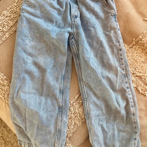 Hyväkuntoiset, ehkä kerran jalassa olleet farkut, koko 110. Vyötäröllä säädettävä kuminauha. Kuminauha on ehkäpä hieman venynyt.