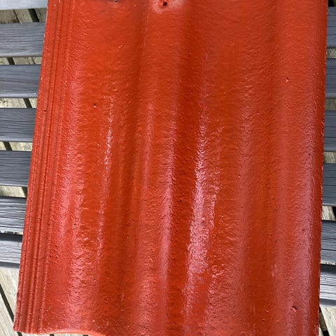 Edellisen sukupolven Benders-kattotiiliä. Ovat käyttämättömiä ja varastoitu katon alla. Väri savitiilen punainen ja läpi värjättyjä. Helppo myös maalata esim. mustaksi, koska pinta on täysin ehjä ja puhdas. Mitat löytyvät kuvista. Myös käyttämättömiä harjatiiliä löytyy, samoin puolitiiliä. Huom. ! Purkuliikkeet pyytävät näistä tiilistä jopa kympin kappale, vaikka ovat olleet katolla jo pitkiä aikoja. Nämä ovat käytännössä uusia.