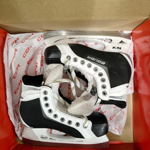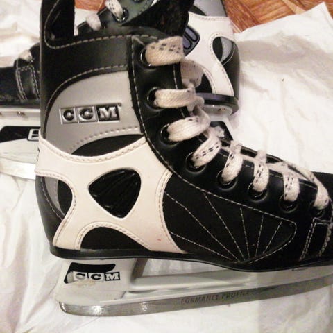 Käytetyt, mutta vielä ok kuntoiset CCM jääpalloluistimet kiekkoterällä.