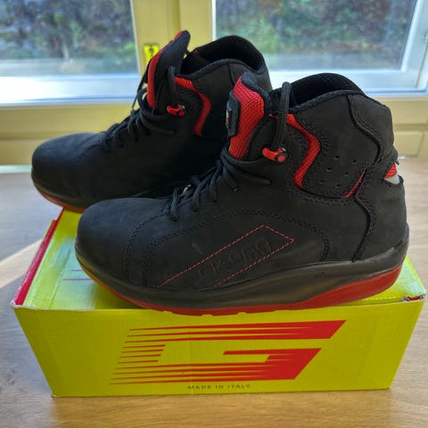 Uudet Giascon turvajalkineet, jotka ovat olleet esittelykäytössä, eli näitä on voitu sovittaa, eikä laatikko ole priimaa.