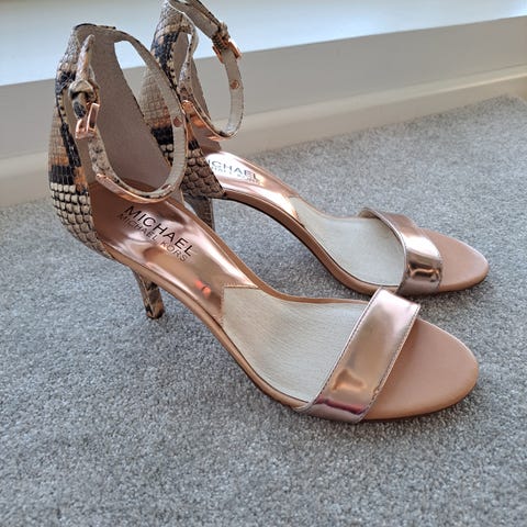 Myydään erinomaisessa kunnossa olevat Michael kors korkokengät. Korkolapuissa pientä kulumaa, mutta edelleen paljon käyttöpintaa. Valmistajan koko 6.5M. Myydään koska liian pienet nykyään.
