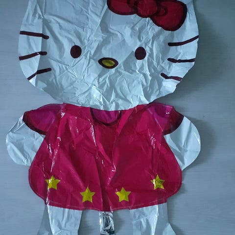 Käytetty syntymäpäiväjuhlissa. Tämän jälkeen ilma tyhjennetään pillillä. Pilli jää sisään. Voit helposti täyttää ilmalla ja se on kuin uusi.