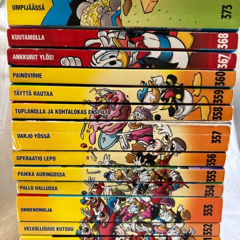 Aku Ankka taskarit 151-159 ja 159-162, 183, 185 ja 195. 151-159 sarja on uudempia ja nuo yksittäiset 159> vanhempia painoksia