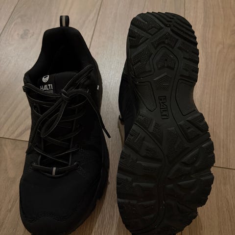Käyttämättömät miesten ulkoilukengät, kerran sovitettuna jääneet kaapin perukoille