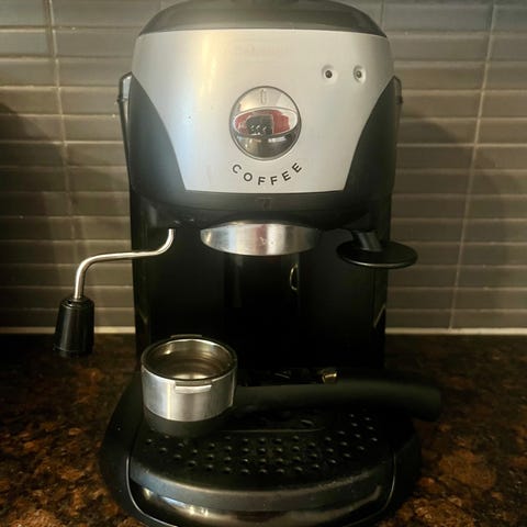 Kahvikone valkoisella värillä. Laite on suunniteltu kotikäyttöön ja tarjoaa monipuoliset kahvinkeitto-ominaisuudet. Koneessa on digitaalinen näyttö ja automaattinen kahvijauheen annostelu. Materiaali kestävää muovia ja metallia. Sopii erilaisille kahvijuomille.