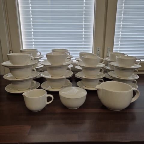 Arabia Domino teepannu ja kupit