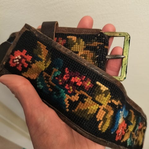 Obi - japanilainen vyö (obi), vintage ja värit: keltainen, punainen, vihreä. Pituus n 3,5m ja leveys 15cm. Puuvillaa.