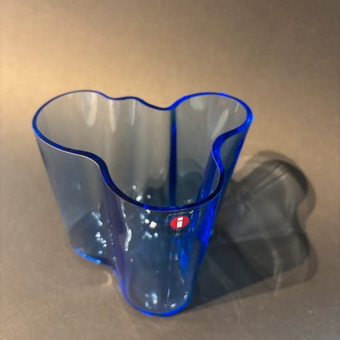 Aalto maljakko 9,5 cm merensininen takana ylhäällä pieni riksu muuten ei naarmuja tms