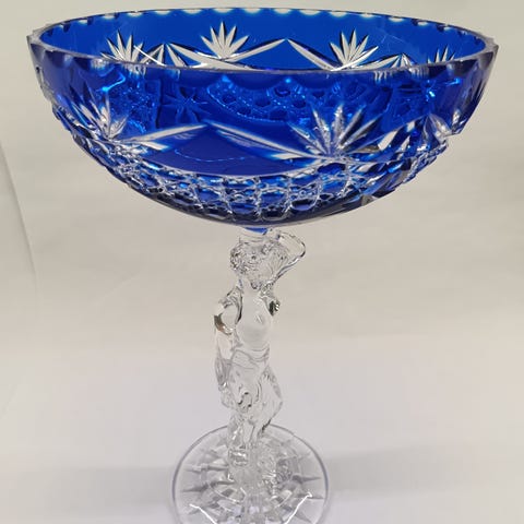 1. Moser malja. Halkaisia 20,5cm, korkeus 12,5cm, paino 2,4kg (kultareunukset) 120€