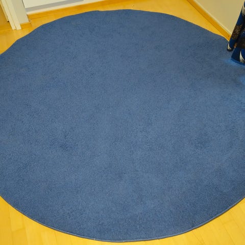 Upea musta pyöreä matto, halkaisija noin 180 cm