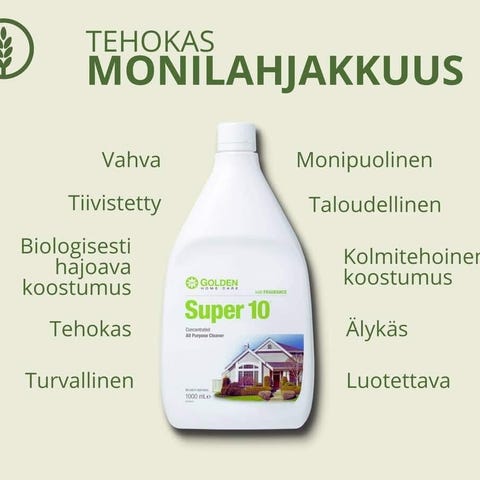 Monikäyttöinen, soveltuu lattioiden pesuun, vahan poistoon, moottoreiden pesuun, renkaan jälkien poistoon betonipinnoilta, saniteettitilojen pesuun, desinfiointiin jne.